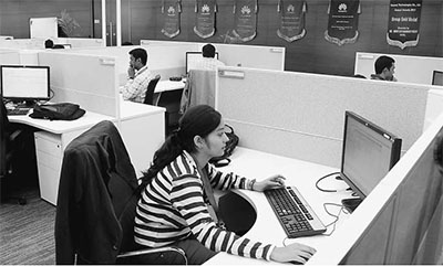 图为华为班加罗尔研发中心的工作平台。本报记者 邹 松摄