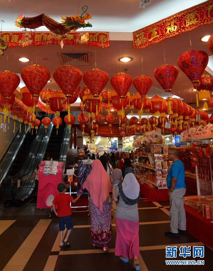 为迎接即将到来的中国农历羊年,文莱各大购物中心为顾客准备好了充足的节日吉祥物、传统生肖、灯笼和饰品,中国春节气氛渐浓。中国农历新年也是文莱的法定假日,全国放假一天。文莱居民喜欢在节日到到商场和超市选购中国年货。新华网记者 郑捷 摄