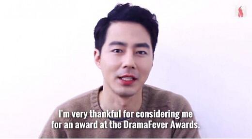 由于日本行程未能参加颁奖典礼的赵寅成通过视频向观众致以谢意,“第一次向各位Drama Fever Awards的观众问好。在颁奖典礼中获得三冠王,真的非常感谢大家。很希望能够亲自前往纽约,与大家见面,但是由于日本行程无法参加,十分抱歉。去年一年通过《对不起,是爱情啊》受到大家的支持,我度过了幸福的一年。今年也会努力以更优秀的作品和大家见面。谢谢”。