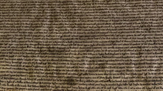 《大宪章》是1215年6月15日英王约翰被迫签署的宪法性的文件。其宗旨为保障封建贵族的政治独立与经济权益。这张书写在羊皮纸卷上的文件在历史上第一次限制了封建君主的权力。