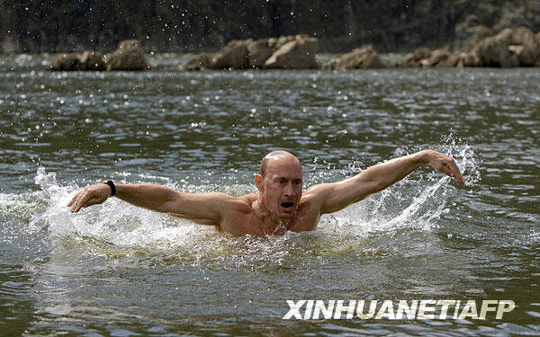 当天,普京还在一处陡峭崖边激流垂钓;戴着牛仔帽和墨镜,驾驶一艘摩托艇在湍急的水上疾行;在清冷的湖中蝶泳;甚至上树,摆出一个雪豹般的矫健姿态。雪豹是当地濒危动物。 >>>详细