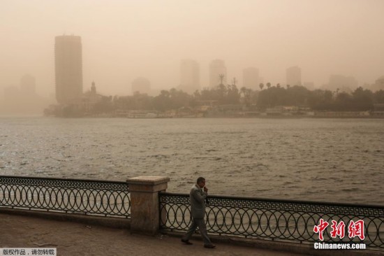当地时间2月10日,埃及开罗,当地遭遇大规模沙尘暴天气,漫天的黄沙遮蔽了太阳。由于沙尘天气过于恶劣,开罗国际机场也被迫关闭。