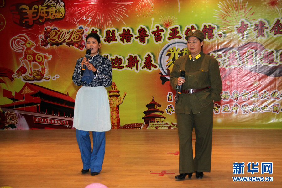 羊年春节临近之际,格鲁吉亚华人、华侨、中资企业代表与中国驻格大使馆工作人员7日在首都第比利斯欢聚一堂,举办了一场颇具中国特色的山寨版春晚共迎新春佳节的到来。新华网记者 李铭 摄