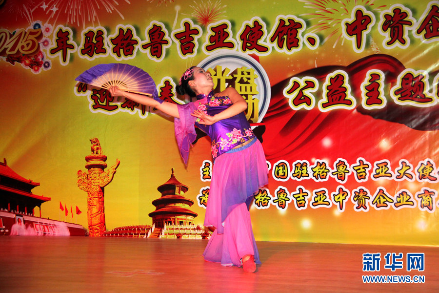 羊年春节临近之际,格鲁吉亚华人、华侨、中资企业代表与中国驻格大使馆工作人员7日在首都第比利斯欢聚一堂,举办了一场颇具中国特色的山寨版春晚共迎新春佳节的到来。新华网记者 李铭 摄