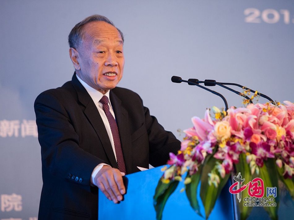 图为中国公共外交协会会长、外交部原部长李肇星在“21世纪海上丝绸之路国际研讨会”高峰论坛发表演讲。中国网记者 郑亮 摄