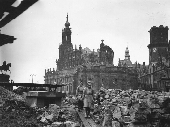 国际在线专稿:据英国《每日邮报》2月12日报道,1945年2月13日至15日,英国和美国空军联合发动了对德国东部重要城市德累斯顿(Dresden)的大规模空袭,并先后投下3900吨炸弹。在这次轰炸中,该市1600英亩面积的城区被毁,超过2.5万名市民丧生,整个德累斯顿几乎变成一片废墟。