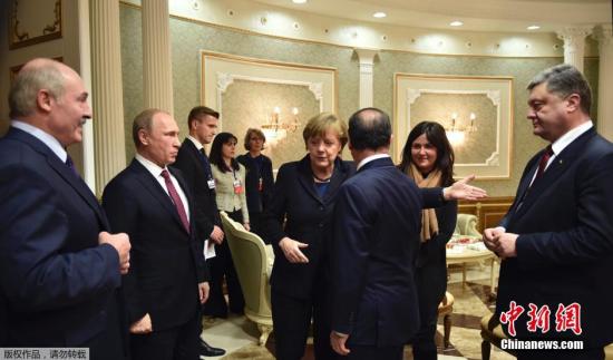 乌克兰、俄罗斯、德国和法国领导人于2月12日在明斯克举行会谈,最终执行明斯克协议的综合措施得以通过,这些措施的规定包括顿巴斯从2月15日起停火,撤出重型武器并设立安全区。