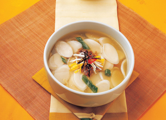 18世纪中叶记载朝鲜风俗的《东国岁时记》称“年糕汤”为白汤或饼汤。由于年糕的颜色雪白,于是称之为白汤,或者因为主要材料为年糕,就称为饼汤。初一早上,韩国人拜祭祖先的时候,年糕汤代替米饭。等祭祀结束之后,一家人以年糕汤作为主食,一起吃新年的第一顿饭。根据《东国岁时记》,年糕汤是拜祭祖先和岁餐(春节时准备的饮食)不可或缺的饮食,大年初一的第一顿饭就是年糕汤,并且接待串门拜年的亲戚的时候,也会准备年糕汤。