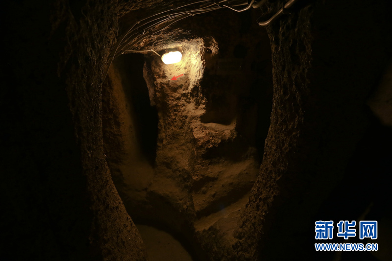 图为内部低矮狭小的凯马克勒地下城,这座地下城入选联合国教科文组织世界遗产名录,共七层,开放部分可至地下四层,最多曾容纳3000名在此避难的基督徒。(新华网记者 邹乐 摄)