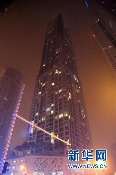这是2月21日凌晨拍摄的阿联酋迪拜发生火灾的公寓楼。 新华社记者 李震 摄