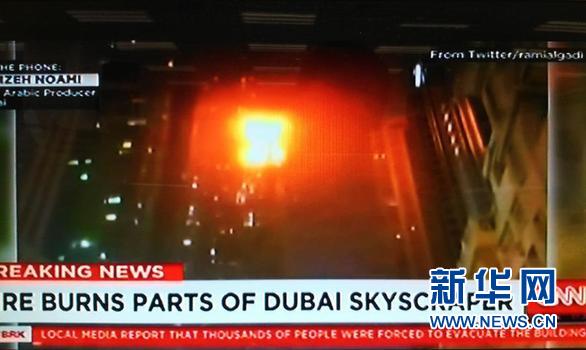这张2月21日拍摄的视频截图显示,迪拜一栋住宅大楼发生火灾。 新华社发
