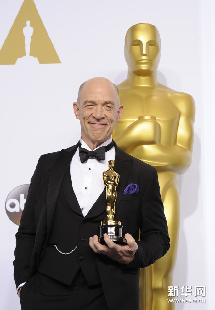 最佳男配角由《爆裂鼓手》J·K·西蒙斯获得(新华社记者杨磊摄)