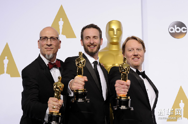 最佳动画长片《超能陆战队》导演唐·霍尔和克里斯·威廉姆斯(新华社记者杨磊摄)