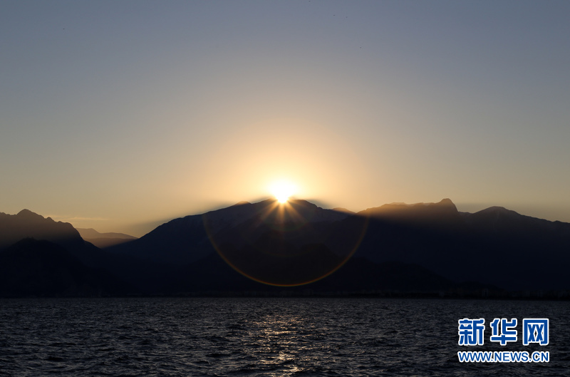 图为日落西山,太阳在山尖如钻石般璀璨,而安塔利亚正是土耳其旅游业一颗闪闪发亮的明珠。新华社记者邹乐摄