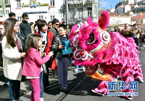 “欢乐春节”旅葡华侨华人春节庆祝活动上的舞狮。(新华社记者张立云摄)