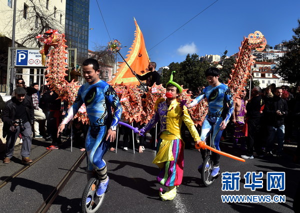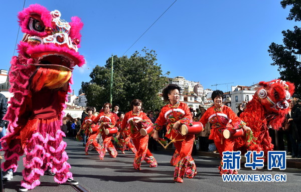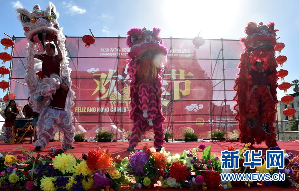 “欢乐春节”旅葡华侨华人春节庆祝活动上的舞狮。(新华社记者张立云摄)