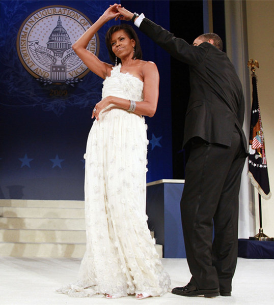 2009年,奥巴马就职典礼舞会,米歇尔穿Jason Wu品牌礼服。