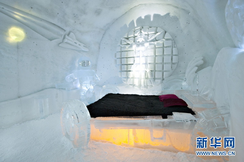 魁北克冰晶酒店吸引了国内外游客前来参观并下榻冰酒店,体验中冰天雪地中过夜的滋味。即使室外温度为零下40摄氏度,酒店内的气温却始终会保持在零下3至6摄氏度。旅客们晚上就寝时都要钻进睡袋,上面再加盖保温性极好的鹿皮毡子。记者 李保东 摄