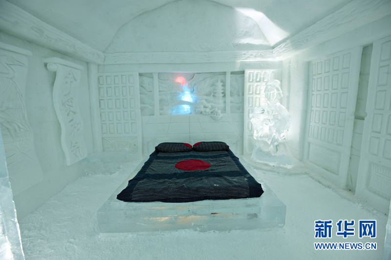 魁北克冰晶酒店吸引了国内外游客前来参观并下榻冰酒店,体验中冰天雪地中过夜的滋味。即使室外温度为零下40摄氏度,酒店内的气温却始终会保持在零下3至6摄氏度。旅客们晚上就寝时都要钻进睡袋,上面再加盖保温性极好的鹿皮毡子。记者 李保东 摄
