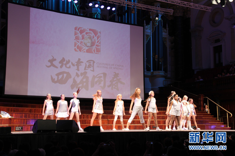 2月25日,由中国国务院侨办和中国海外交流协会联合主办的“文化中国·四海同春”在悉尼举办大洋洲团的首场演出,歌手成方圆、中国好声音学员李维、周深等国内知名表演者和中澳艺术团体为当地华侨华人送来新春祝福。图为澳大利亚华星艺术团为观众表演现代舞。新华社记者赵小娜摄