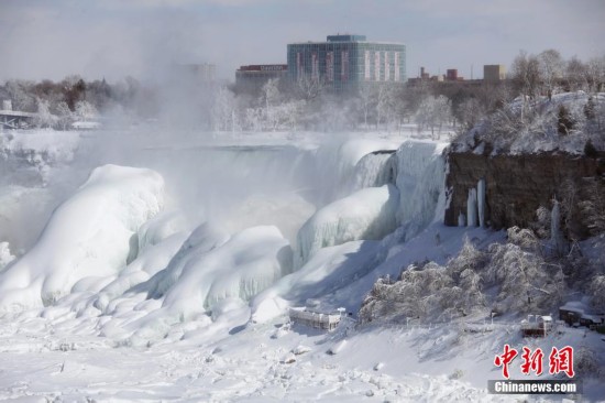 2月25日,位于加拿大安大略省和美国纽约州的尼亚加拉河上的尼亚加拉大瀑布被冰雪覆盖,景致壮观。尼亚加拉瀑布是世界第一大跨国瀑布,与南美的伊瓜苏瀑布和非洲的维多利亚瀑布并称为世界三大瀑布。尽管近期当地遭遇历史上同期少有的极寒天气,但世界第三大瀑布依旧奔流不息。 中新社发 徐长安 摄