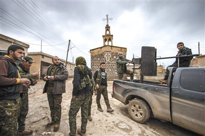 2月25日,叙利亚泰勒塔莫镇,库尔德人民保卫部队战士向“伊斯兰国”发起猛烈进攻,切断其一条补给线。泰勒塔莫镇是亚述基督徒的村镇。