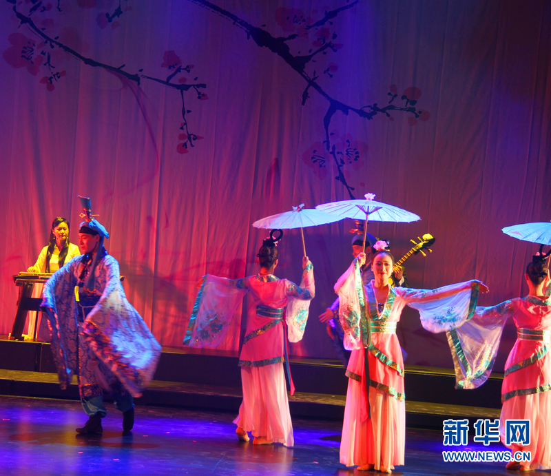 演出节目有民族歌舞、器乐、杂技等,舞台设计简约喜庆,具有浓浓的中国味。汉唐宫廷乐舞《舞之韵》和古典舞《竹枝词》表现了中华民族悠久的文化传承和多姿多彩的艺术风格,而民乐合奏的《独克宗》则展示了中国民族乐器委婉悠扬, 叫人流连忘返。杂技《抖杠》,演员双人空中转体720度转体等高难度动作,展现了力与美、刚与柔完美统一,让人叹为观止。