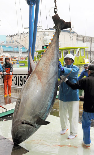 据报道,捕获这条大鱼的是延绳渔船第18金比罗丸号(19吨),位置是在潮岬西南方向约450公里处。船长一政健一兴高采烈地说:“把它弄到船上花了30多分钟。这是今年第一次捕到本鲔金枪鱼。目前为止所付出的辛苦都得到了回报,太高兴了!”