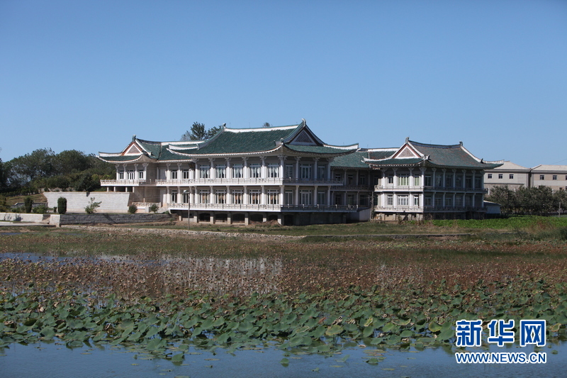 从平壤去大浦路上拍摄的湖边建筑 新华网记者曾涛 摄