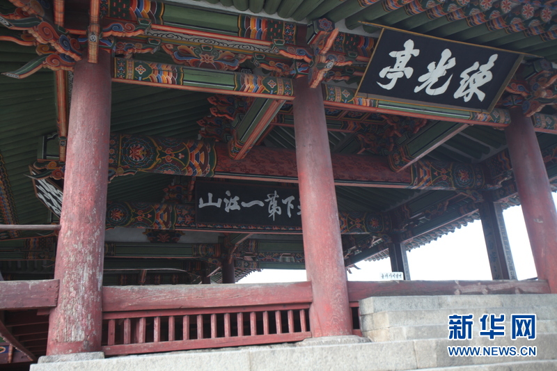 朝鲜大同江畔练光亭,上书“天下第一江山” 新华网记者曾涛 摄