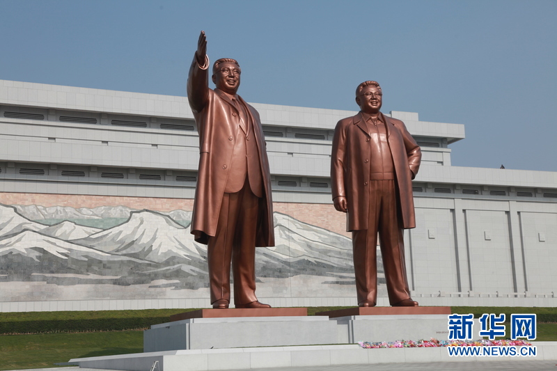 朝鲜万寿台上的金日成和金正日铜像 新华网记者曾涛 摄