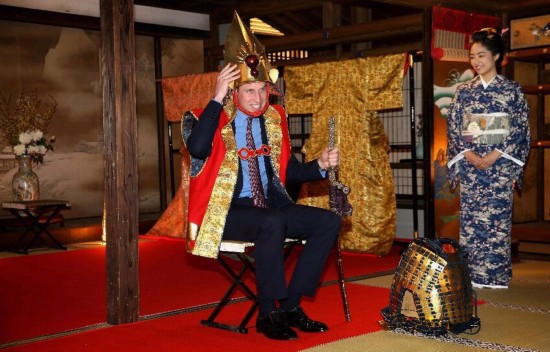 原标题:威廉王子参观日本电视剧片场 试穿古装盔甲(组图)