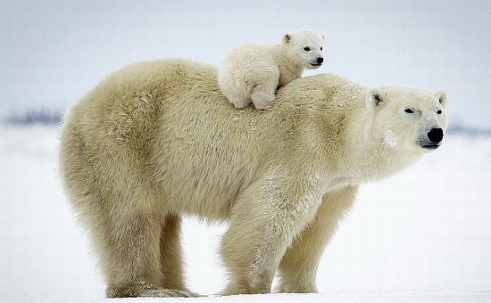 这头小北极熊决定,无论如何要待在母亲的背上。(网页截图)