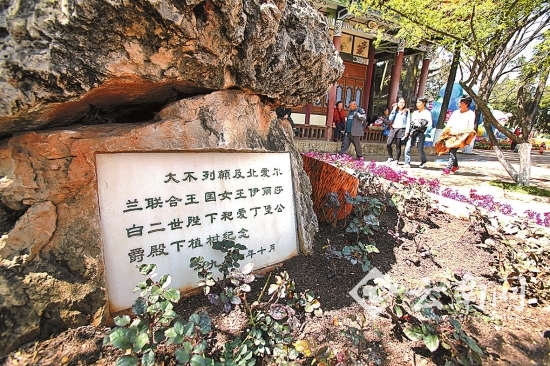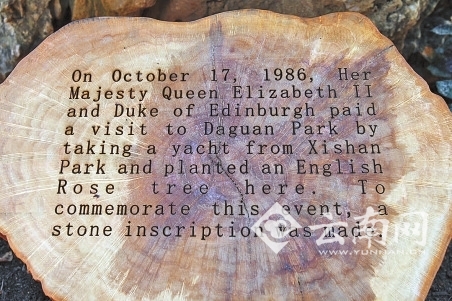 (英国女王在大观公园“观稼堂”侧的假山花园内种下了象征中英友谊的玫瑰。)