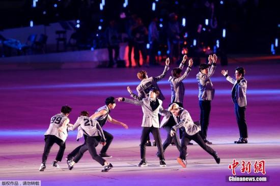 2014年9月19日,仁川亚运会开幕式在仁川亚运主体育场举行。图为EXO劲歌热舞表演。