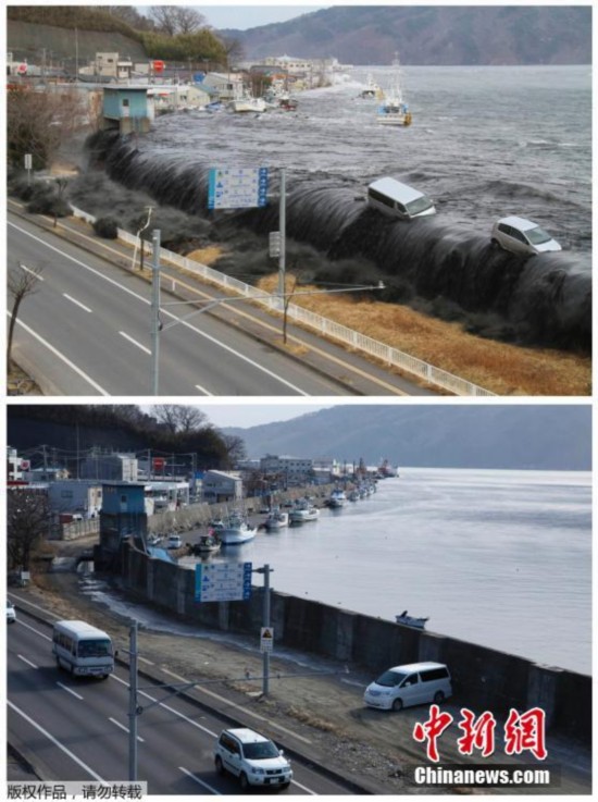 2015年3月8日消息,日本2011年地震海啸爆发临近四周年,摄影师拍摄灾区今昔对比图。2011年3月11日,日本于当地时间11日14时46分发生里氏9.0级地震,震中位于宫城县以东太平洋海域,震源深度20公里。日本气象厅随即发布了海啸警报,称地震将引发约6米高海啸,后修正为10米。根据后续研究表明,海啸最高达到23米。 据统计,自有记录以来,此次的9.0级地震是全世界第五高。日本官方已确认地震海啸已造成8133人死亡(2011年03月20日),失踪12272人。此次日本东北地区宫城县北部发生的里氏9.0级地震,为日本有地震记录以来发生的最强烈地震。此外,海啸对日本核电站也造成了巨大破坏,福岛第一核电站受影响最为严重,6个机组中的4个受到影响。
