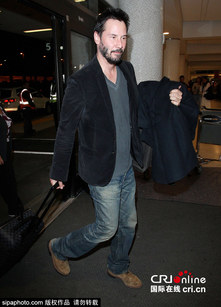 基努·里维斯独自现身机场 满脸胡须惨变大叔 图片来源:Sipaphoto