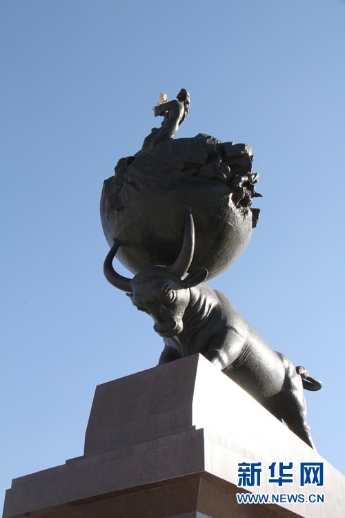 从市中心移到新雕塑群的地震纪念碑(新华网记者 卢敬利 摄)