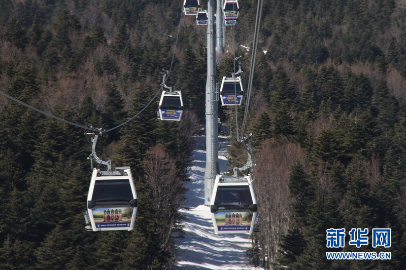 乘着缆车穿过森林上山去。(新华网记者 郑金发 摄)