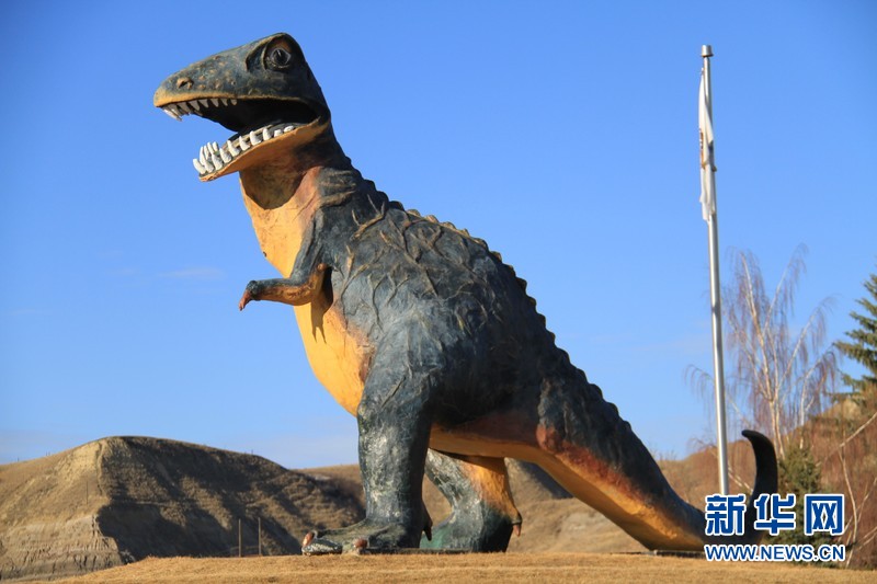 这是3月11日在位于加拿大西部艾伯塔省德拉姆黑勒镇拍摄的一座恐龙雕像,各式各样的恐龙雕像遍布该镇。(新华网记者 晏忠华 摄)