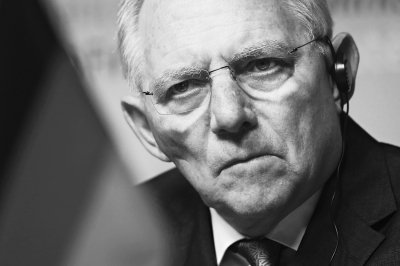 3月17日,在德国柏林,德国财政部长朔伊布勒出席新闻发布会。德国17日宣布愿意成为亚投行意向创始成员国。新华社记者 张帆摄