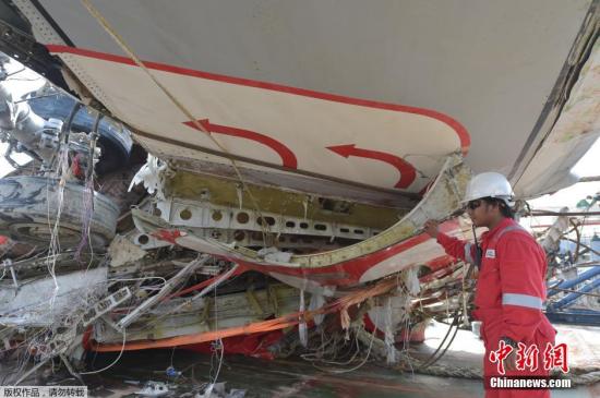 资料图:当地时间2015年3月2日,印尼雅加达,印尼坠毁亚航8501号班机残骸。据外媒报道,印度尼西亚官员28日称,印尼已经打捞起了亚航失事客机QZ8501大块机体残骸的最后一部分。