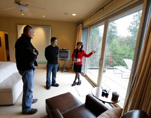 美国西雅图地区的房产经纪珍妮李带领中国买家看房。(美国中文网资料图)