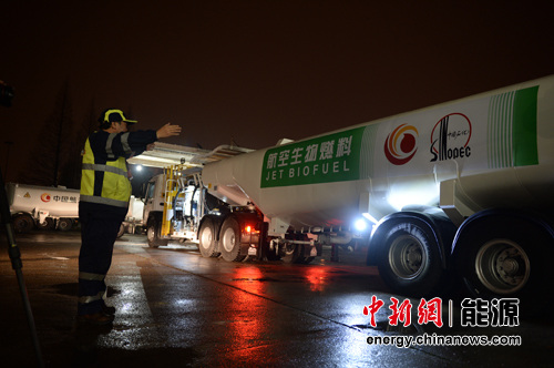 指挥装有生物煤油车辆开往机场