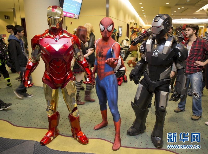 爱好者们装扮成的“钢铁鞋”“蜘蛛侠”等在动漫节中亮相。新华网 邹峥 摄
