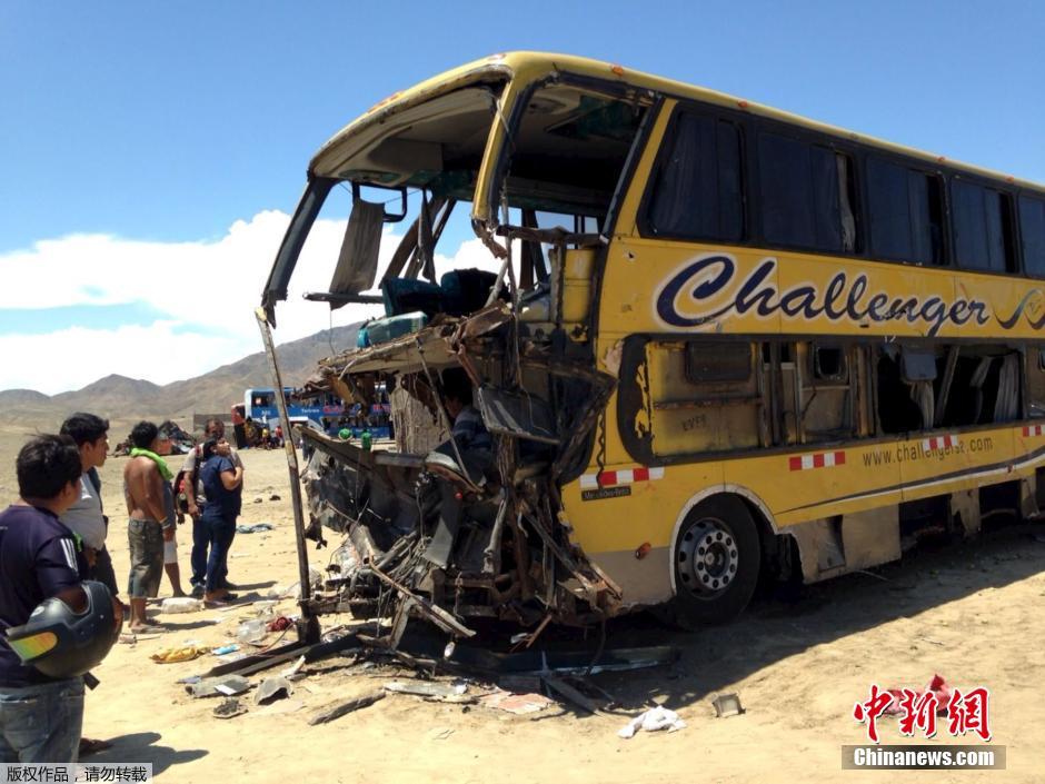 图为发生车祸的大巴车之一。对于秘鲁居民来说,大巴是出行的必要交通工具。但该国交通事故频发,曾被世界卫生组织列为交通死亡率最高的国家之一。