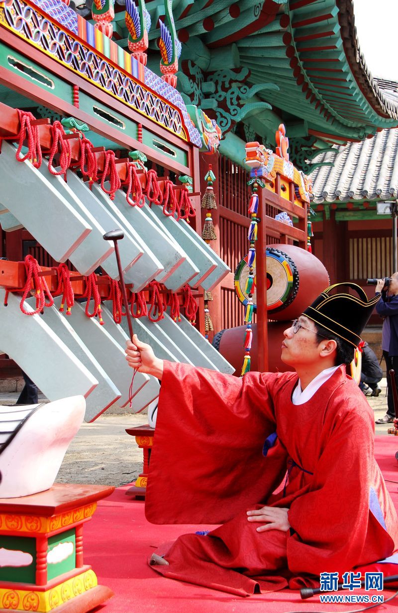 22日,乐师在释奠祭中演奏周代雅乐。新华网记者 彭茜 摄