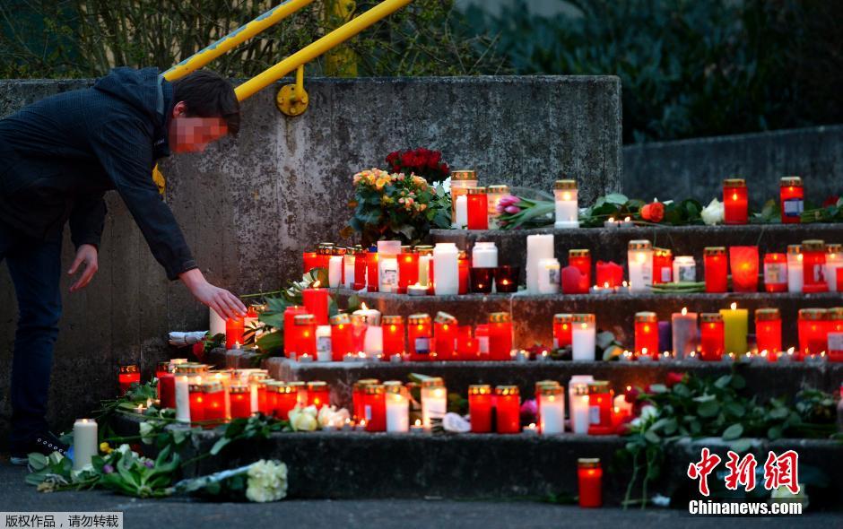 图为在德国西部Haltern,哀悼者们聚集在 Joseph-Konig-Gymnasium学校悼念遇难者。