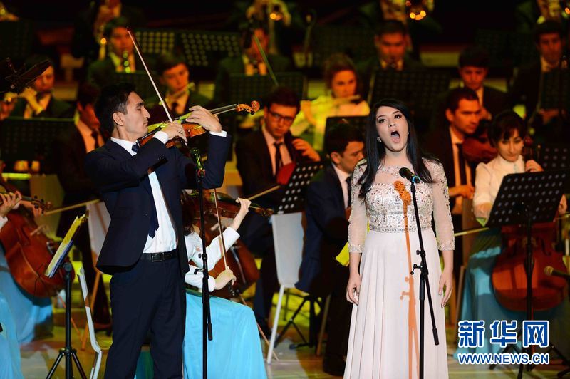 3月25日晚,乌兹别克斯坦首都塔什干“乌兹别克斯坦国际论坛宫”,由乌兹别克斯坦文化体育部等多个部门联合组织举办的“春天交响曲”音乐晚会在首都塔什干“乌兹别克斯坦国际论坛宫”精彩上演,乌兹别克斯坦青年艺术家们向来自乌科学、文化、艺术和体育等各界人士代表、驻乌外国使节和国际组织代表以及前来参加乌总统选举的国际和国内观察员近2500余名观众献上一场世界著名交响曲和乌兹别克斯坦传统民族音乐融为一体的精彩音乐盛宴。新华网记者沙达提 摄