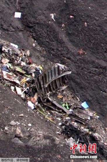 当地时间2015年3月24日,法国Seyne Les Alpes,德国之翼一架A320客机坠毁,飞机残骸散落在山上,飞机已完全解体。